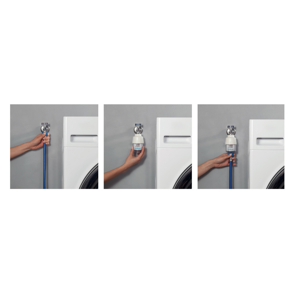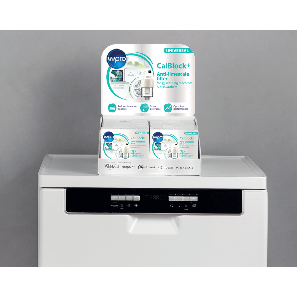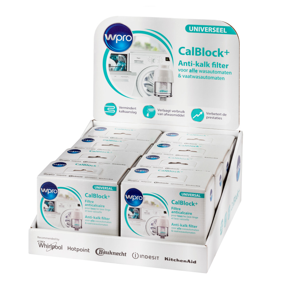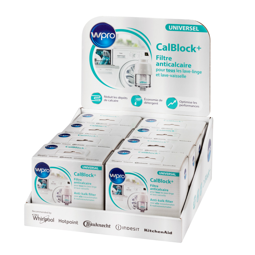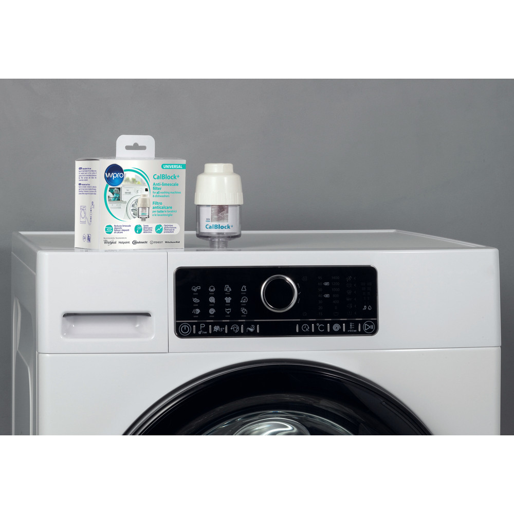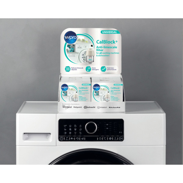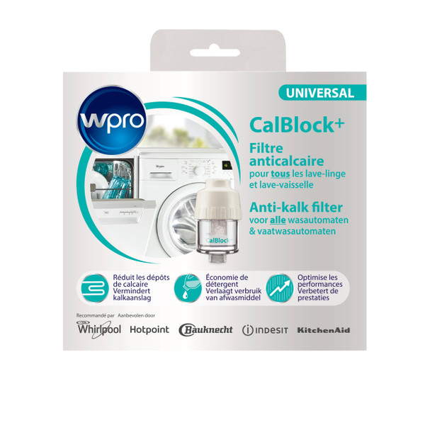 Wpro professionel CalBlock+-system tilbyder fuld beskyttelse af dine husholdningsapparater. Det indeholder polyfosfatkrystaller og et mekanisk filter, som effektivt beskytter de indre dele af dine maskiner (varmeelement, elventil, rør, filtre) fra kalkaflejringer og andet bundfald som rust eller sand. Det bidrager til at reducere vandets hårdhed, sikrer besparelser af vaskemiddel samt bedre vaskeresultater. Det virker bedst ved lavere temperaturer (op til 60°C). Udskift patronen for hver 4. - 6. måned for det bedste resultat. Passer til alle vaskemaskiner, kombinerede vaskemaskiner/tørretumblere og opvaskemaskiner.