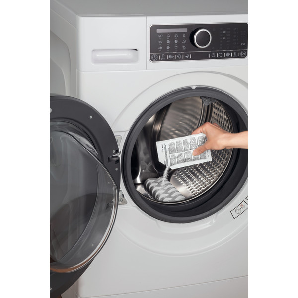 Wpro professionel triple action kalk- og fedtfjerner er den optimale løsning for at vedligeholde dine apparater i perfekt stand. Dens specielle sammensætning reducerer effektivt kalkaflejringer på varmeelementet og nøglekomponenterne i din vaskemaskine og opvaskemaskine, såsom tromle, rør og pumpe. Det fjerner opbygning af fedt og vaskemiddel, selv på svært tilgængelige og usynlige dele af husholdningsapparaterne, hvilket forhindrer dårlig lugt i at udvikle sig. Hæld posens indhold direkte i maskinen eller skuffen, start en 60° C tom vask uden forvask. Tilsæt ikke andre rengøringsmidler. Brug 1 pose hver måned for vedvarende pleje. Tilgængelig i pakker med 6 eller 12 enkeltdose poser. Til alle vaskemaskiner, kombinerede vaskemaskiner/tørretumblere og opvaskemaskiner.